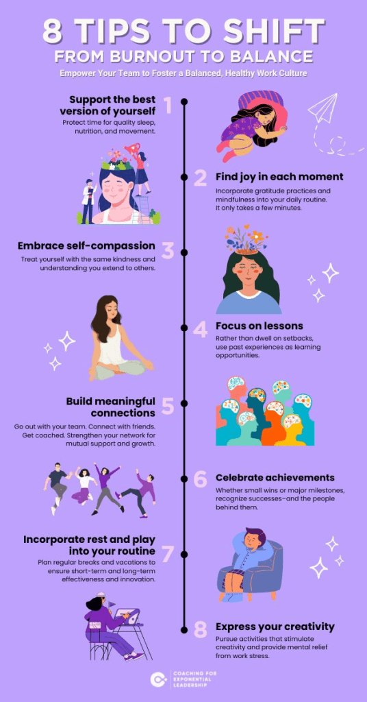 While systemic changes and policy updates are essential, there are steps leaders can take to make a difference. At Coaching for Exponential Leadership, we believe in sustainable, measurable results. As leaders, it’s crucial to not only model hard work but also to model rest and balance.